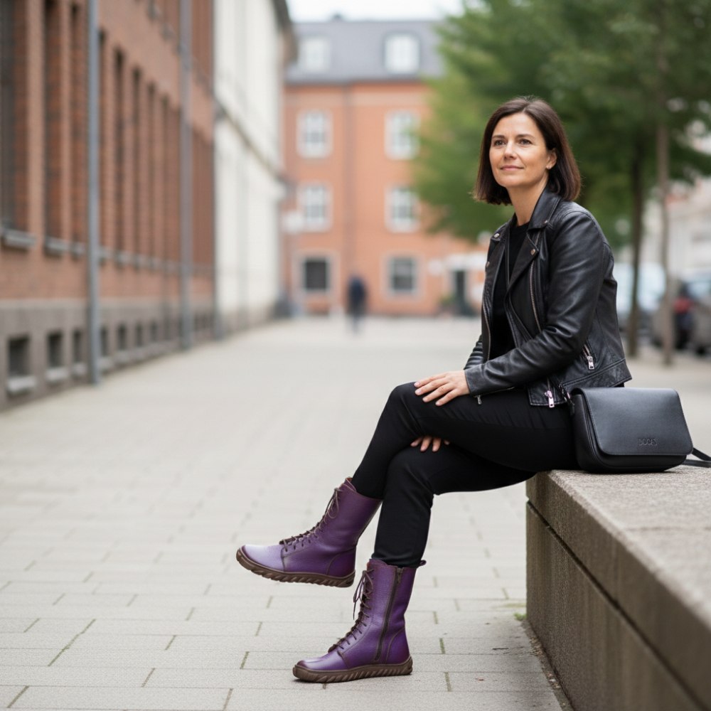 Unsere DOQS Purple vereinen das Beste aus zwei Welten: den unverwechselbaren Look klassischer Schnürboots mit den gesundheitlichen Vorteilen moderner Barfußschuhe.