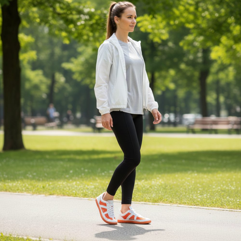 Der Barfuß-Sneaker sorgt mit seiner Farbkombination aus Weiß und Orange für den extravaganten Auftritt. Das macht ihm keiner so schnell nach. Trotzdem ist OAQLEY überhaupt nicht aufdringlich, das Design ist schick und topaktuell.