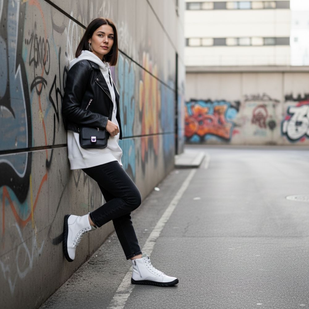 Mit QENDO White läufst Du rutschsicher durch die kühleren Tage des Jahres – ein Barfußschuh, der einfach Spaß macht!