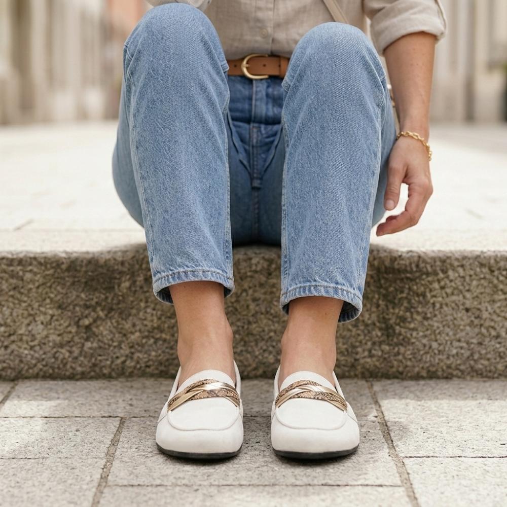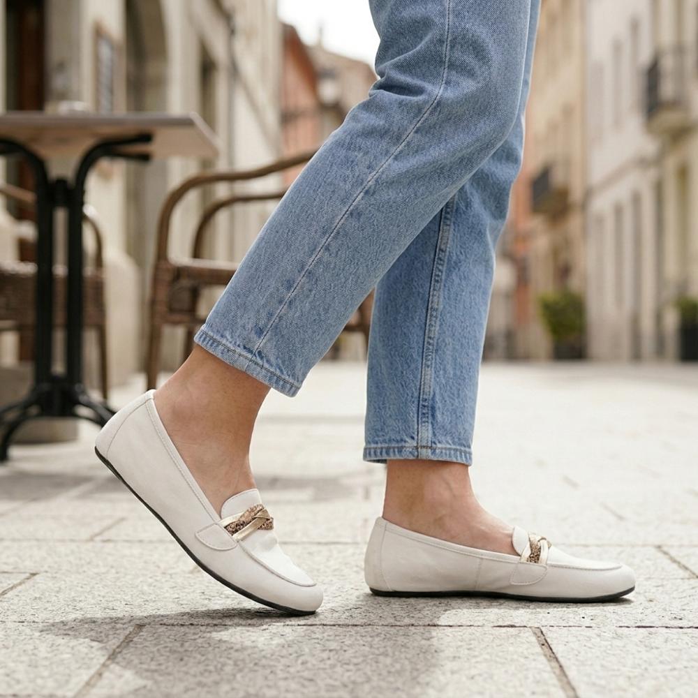 QERP ist Dein weißer Barfußschuh, den Du garantiert zu vielen Anlässen tragen wirst, denn bequemer und femininer geht ein Mokassin nicht.