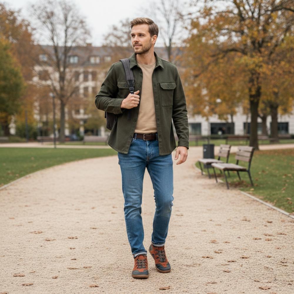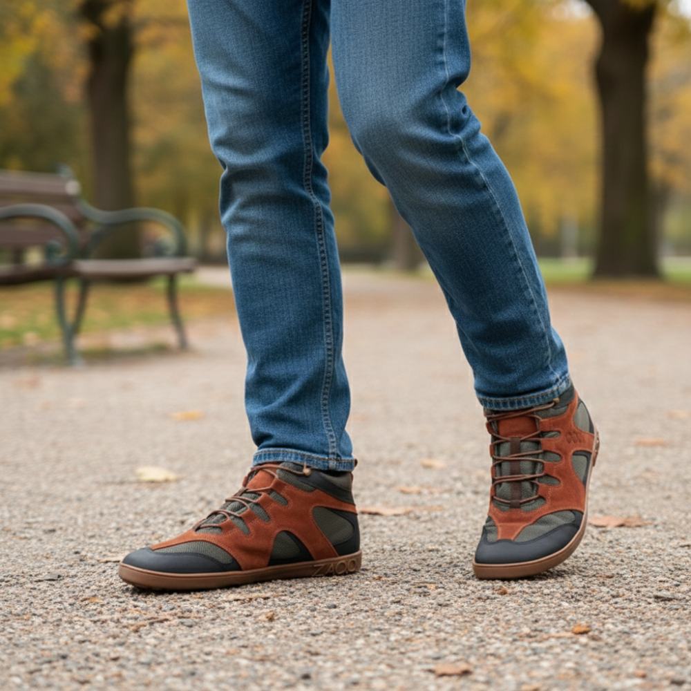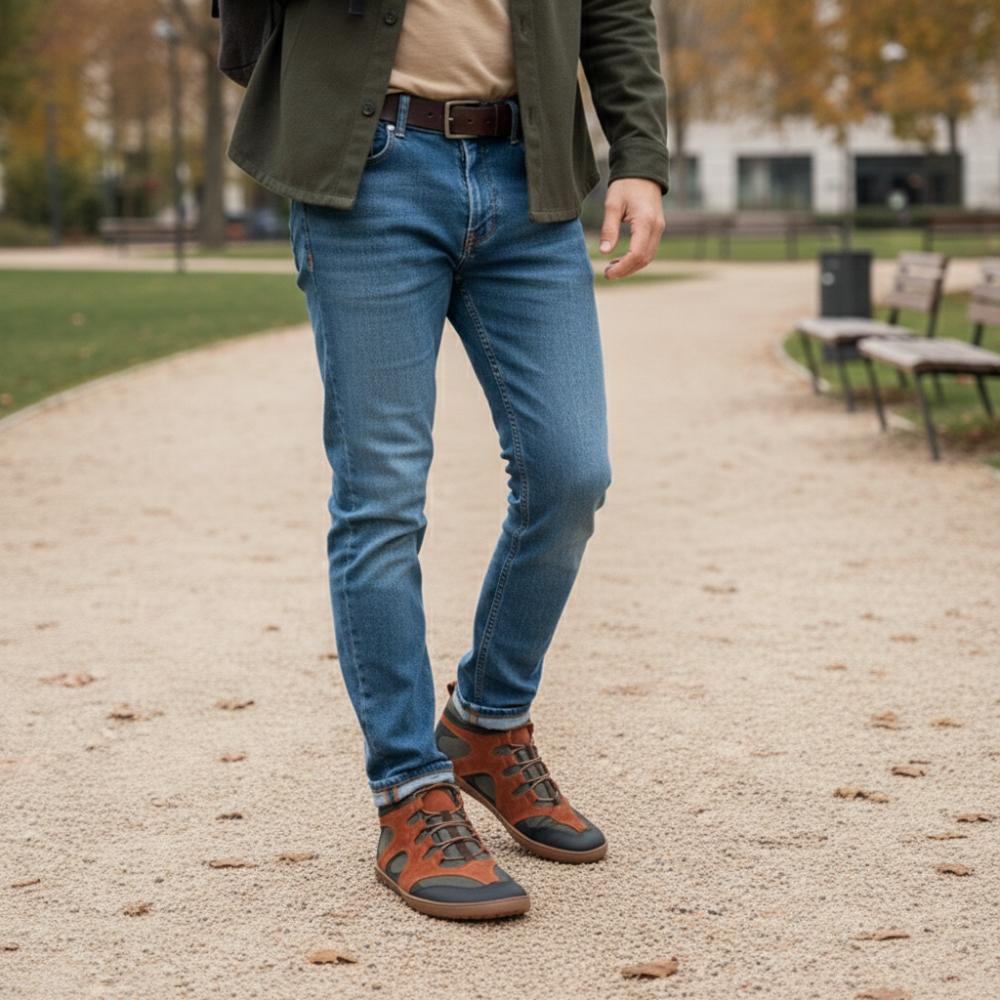QINSLEY Brown ist der halbhohe Barfußschuh für Herren, der durch höchsten Tragekomfort und modernes Design überzeugt.