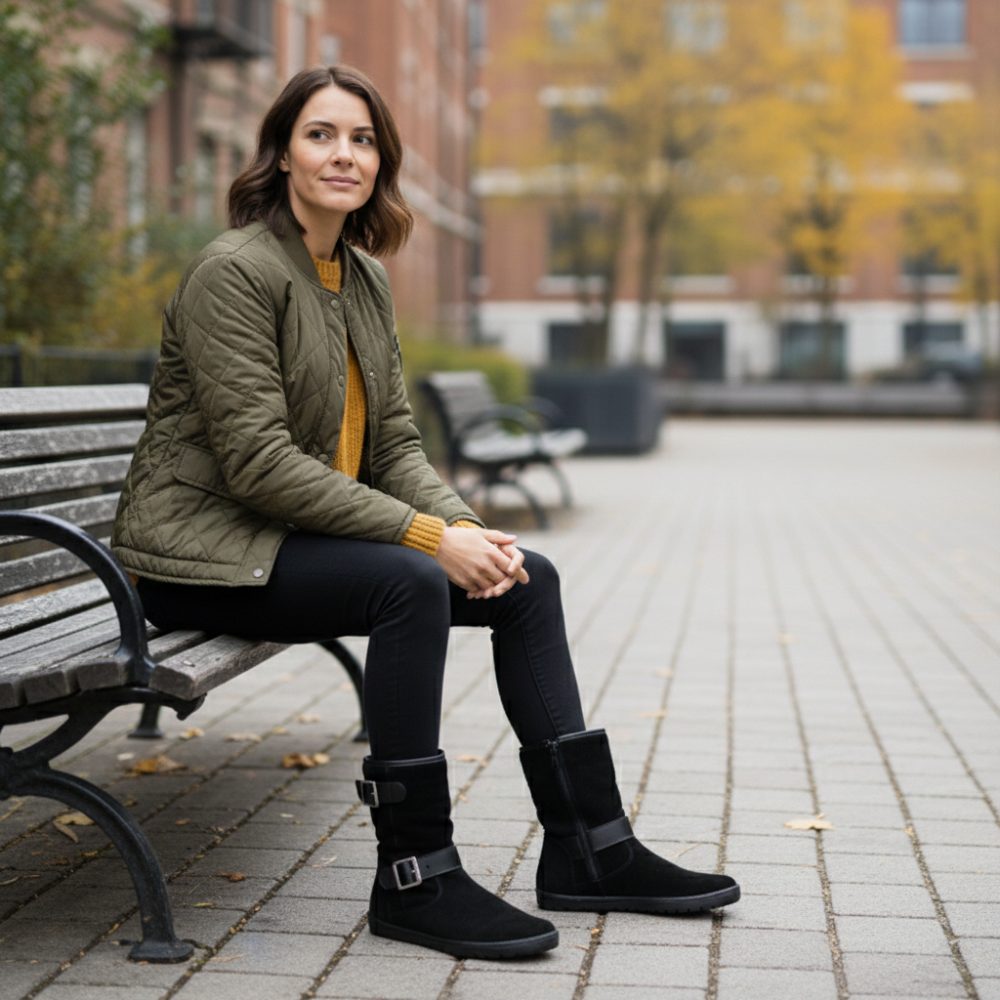 Lo ami non appena l'estate sarà finita per scivolare negli stivali? Allora Aniq ha esattamente ragione! Questa scarpa a piedi nudi si convince con una pelle scamosciata morbida e traspirante dall'esterno e un raffinato leder dall'interno. Quindi puoi facilmente indossare ANIQ nei giorni più caldi autunnali e primaverili o con calze di lana anche in inverno.