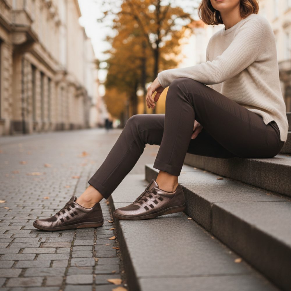 Una sneaker meravigliosa per l'autunno! La scarpa a piedi nudi Brisq Bronze è il tuo compagno perfetto per la prossima stagione. Il bronzo di colore caldo si adatta perfettamente a questa stagione e il luccichio leggero dà alla scarpa una certa eleganza.