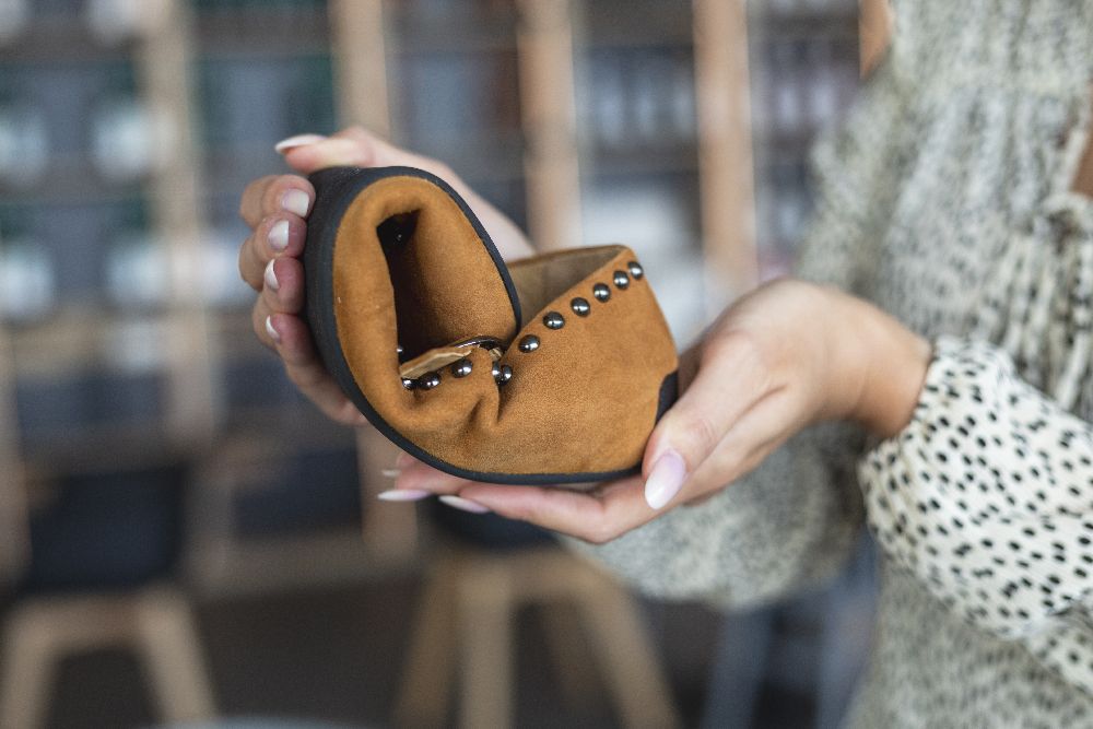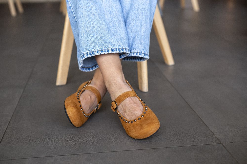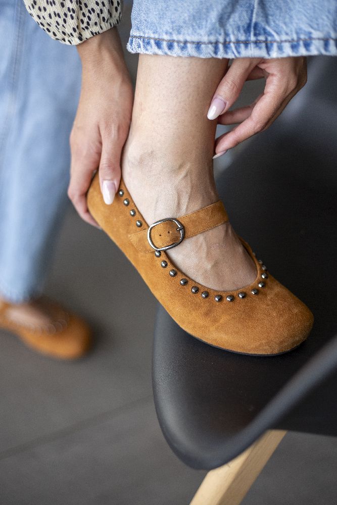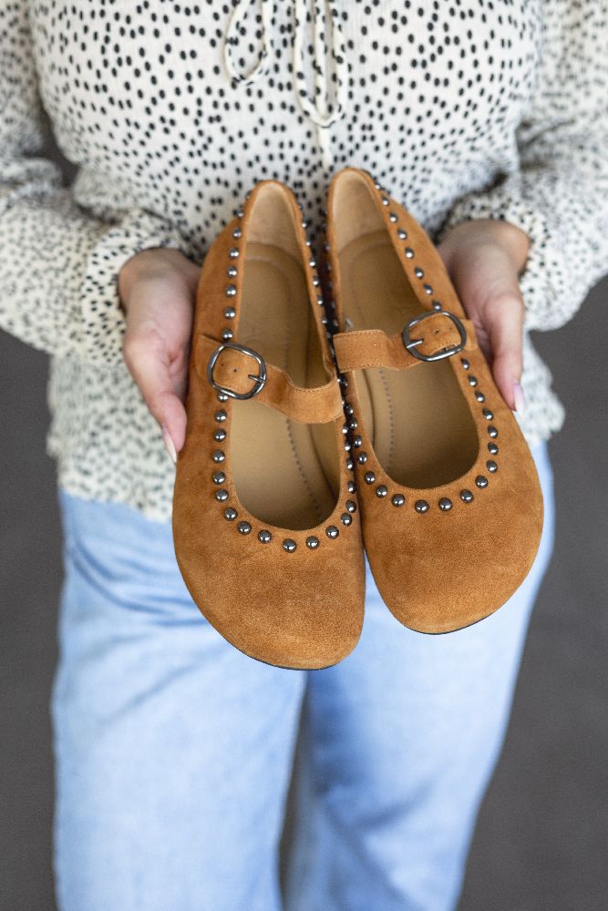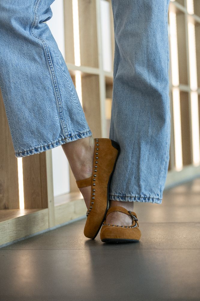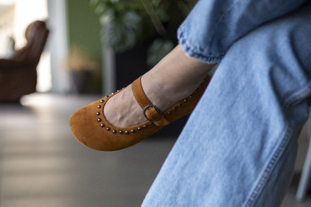 Il nostro Dieqo Brown è la nostra nuovissima scarpa da ballerin in pelle scamosciata marrone. Questo gioiello è foderato con rivetti rotondi e dà a ogni abito un tocco di glamour, senza rinunciare all'incredibile comfort a cui sei abituato dalle nostre scarpe a piedi nudi.
