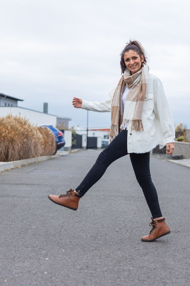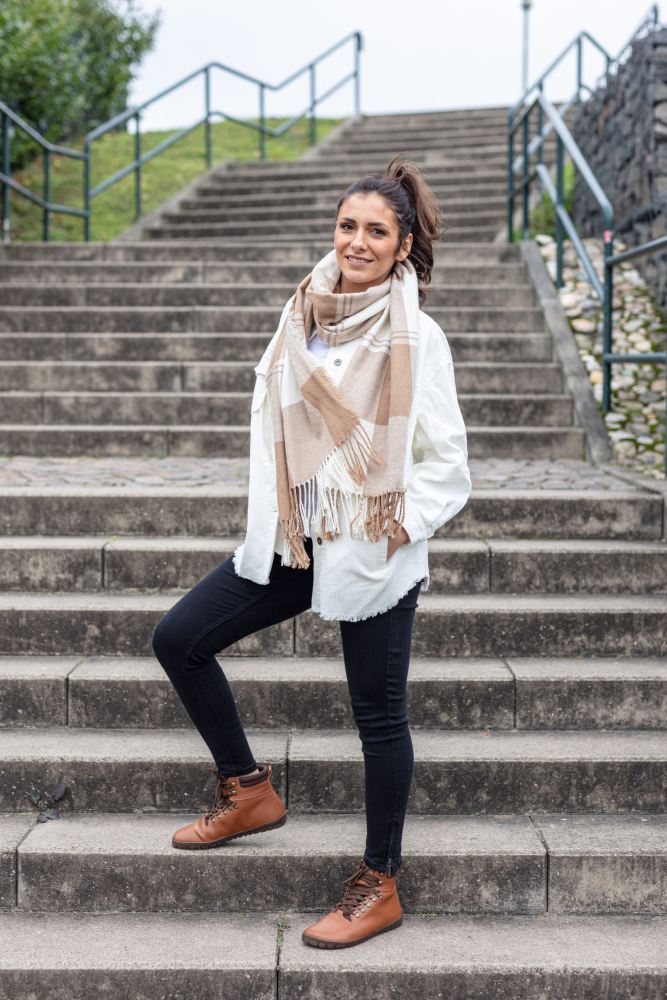 Il materiale vegano sembra una vera pelle. A causa della superficie cerata, è impermeabile. L'elevata attività respiratoria della scarpa esterna è ancora conservata. I tuoi piedi rimangono asciutti quando piove e sono sempre ben temperati a temperature sia più fredde che più calde.