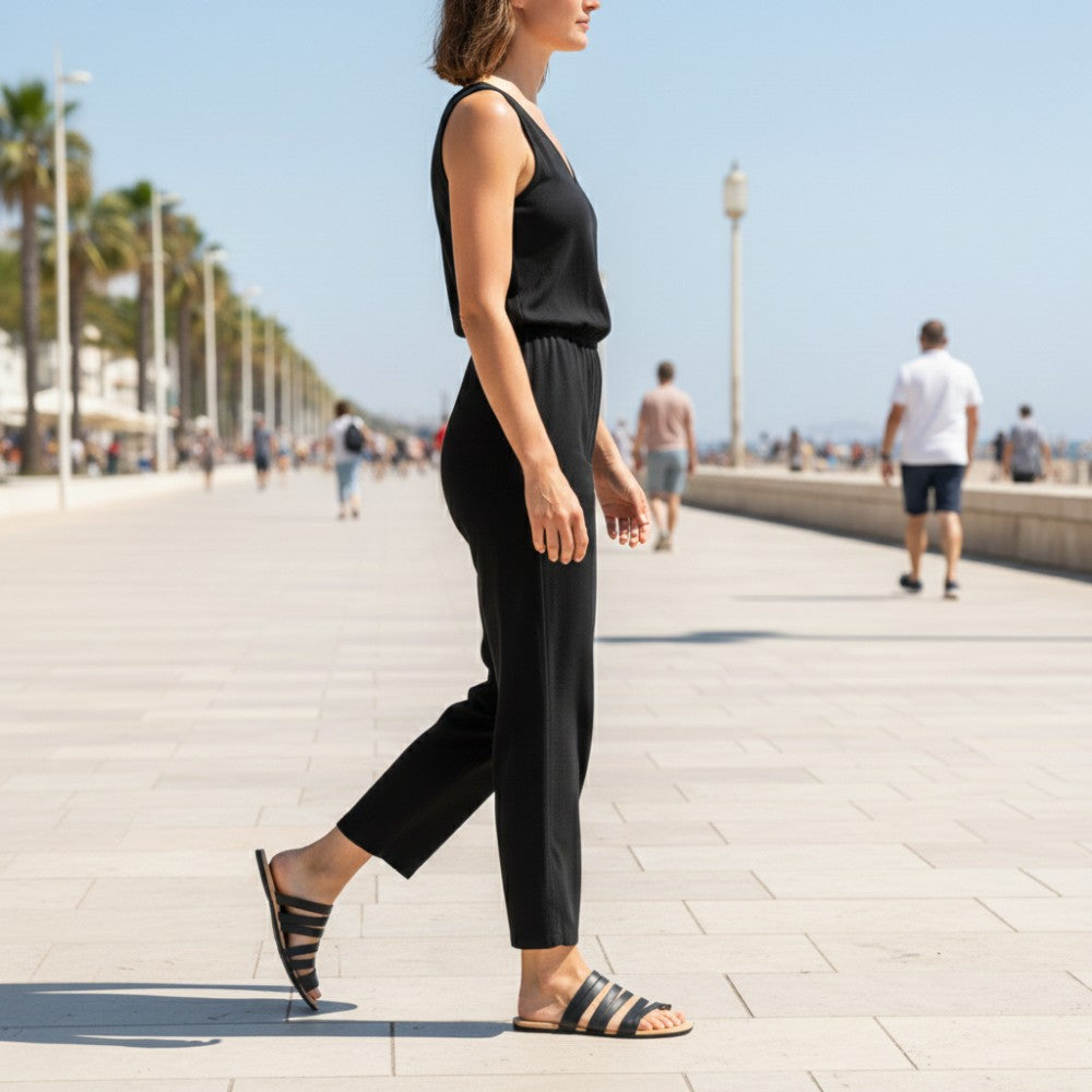 Stai cercando un sandalo così leggero che difficilmente lo senti in piedi? Quindi hai trovato quello giusto con flaqe nero.