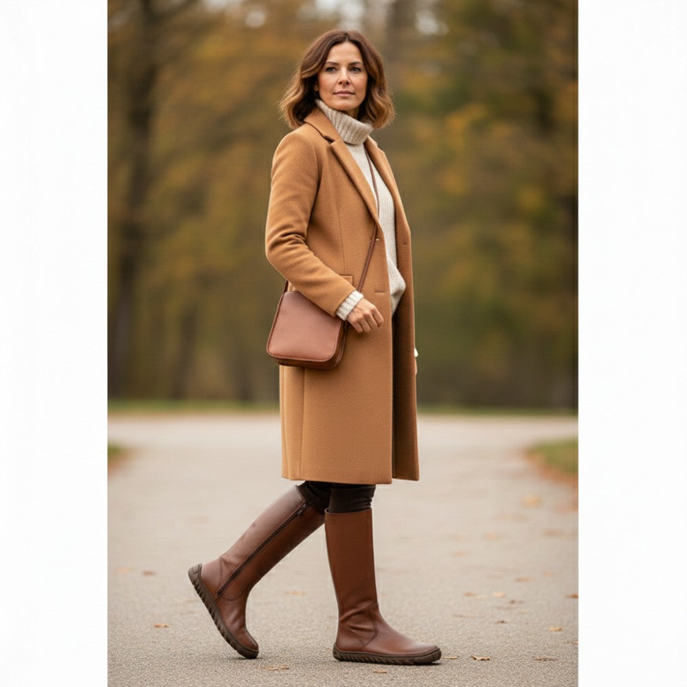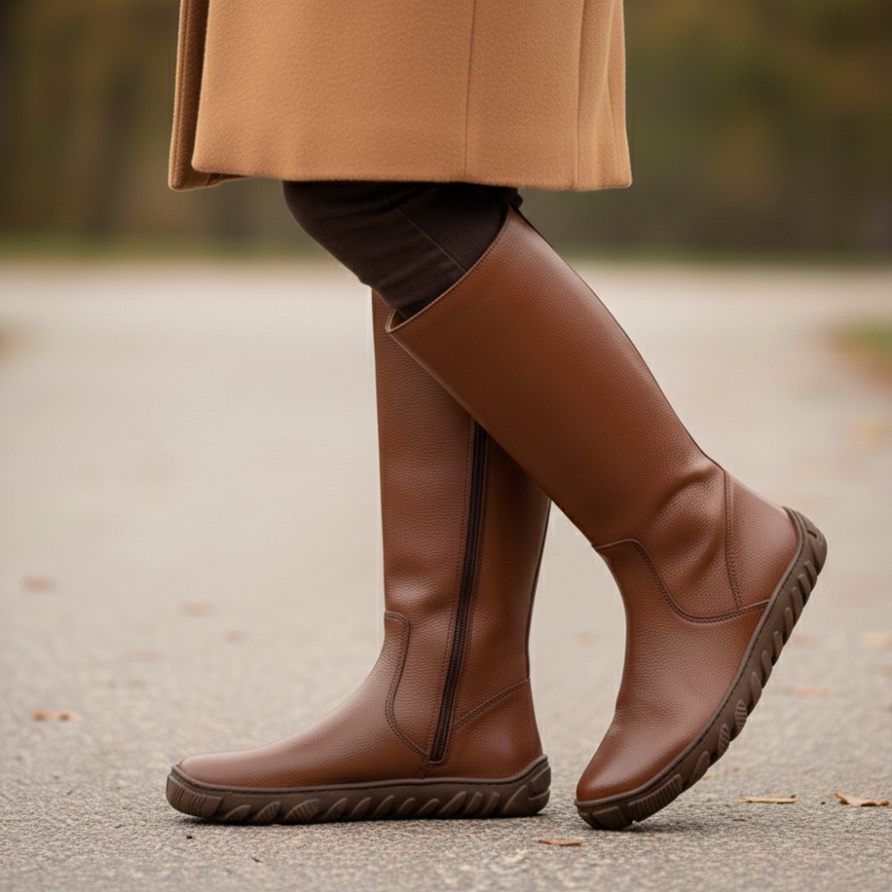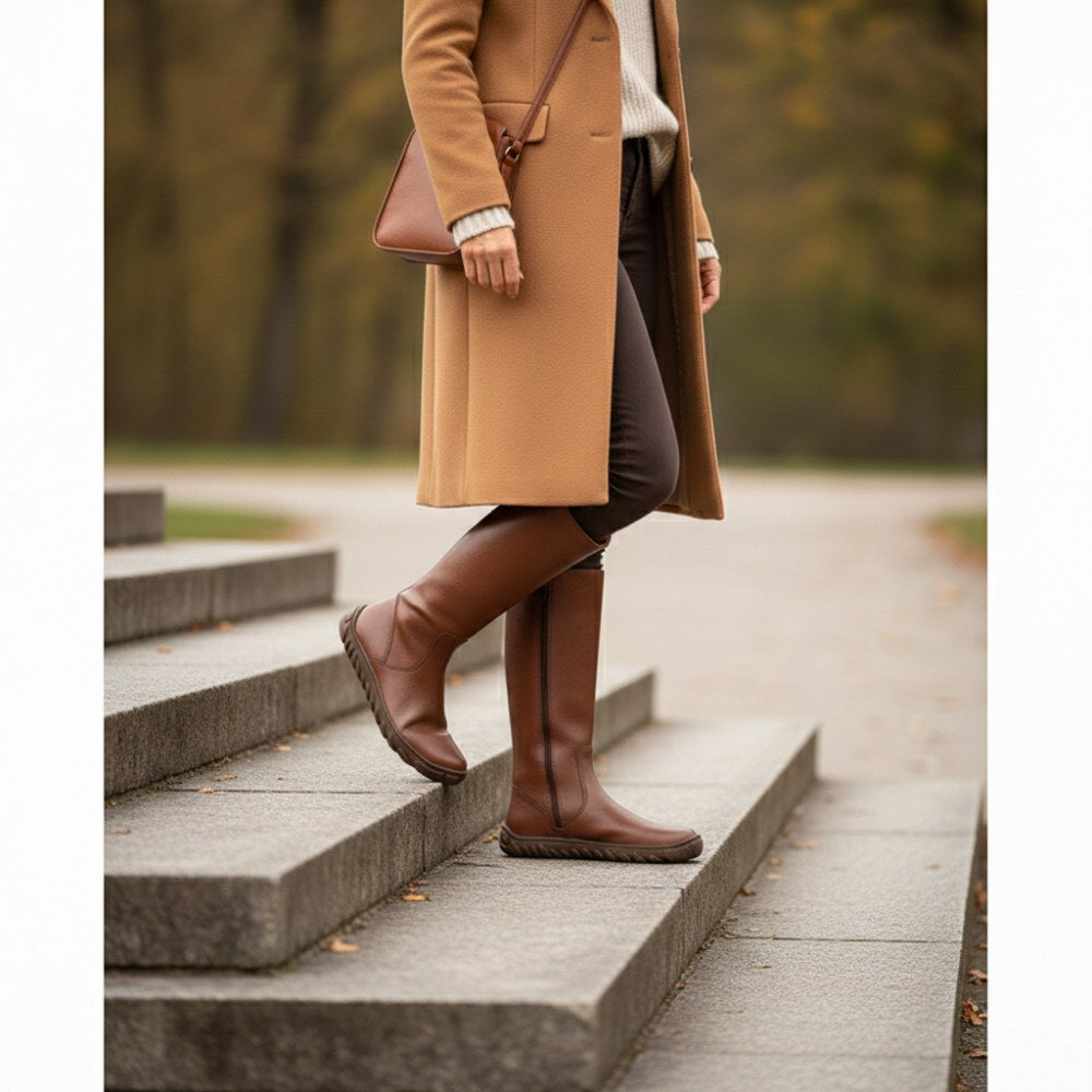 Qazz Brown è il tuo nuovo must-have perché questi stivali combinano eleganza con il comfort delle scarpe a piedi nudi. Il suo semplice design in un tono marrone caldo la rende una compagna versatile che si inserisce senza sforzo in ogni look. Realizzati in pelle Nappa di prima classe, questi stivali alti non sono solo per lo stile, ma anche per la qualità che dura a lungo.