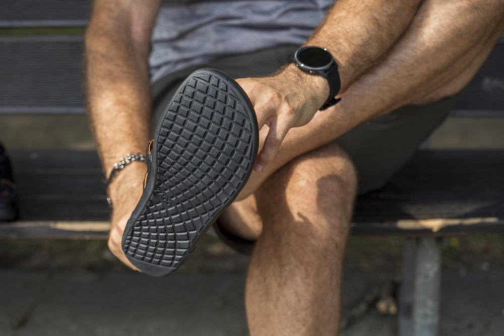 Sole in gomma esterna con tallone zero, alleviando così la colonna vertebrale e proteggendo le articolazioni, supporta la postura naturale