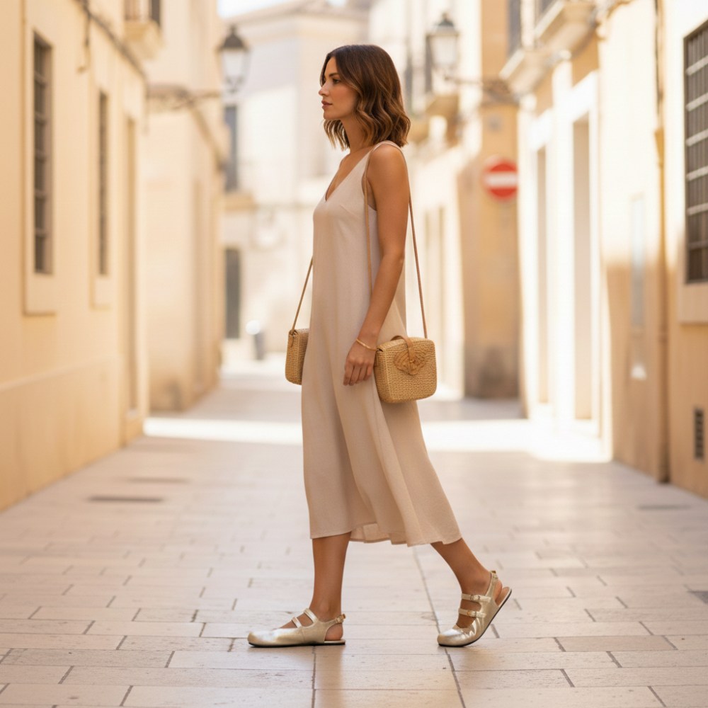 La suola flessibile e la pelle lucida morbida si adattano ai tuoi movimenti. Sii attivo tutto il giorno senza precedere lo stile: il nostro Qomeet Gold lo rende possibile. Indossalo con il tuo abito estivo preferito o combinalo con pantaloni fluenti e un top chic per un elegante look da sera. L'oro Qomeet offre anche al tuo outfit un tocco di glamour ai jeans e una semplice maglietta. È il compagno ideale per matrimoni, feste da giardino o solo per un giorno in ufficio se vuoi dare al tuo look un accento speciale.