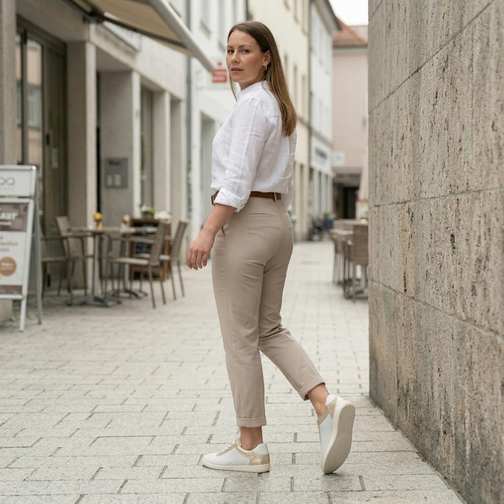 Volevo una semplice sneaker bianca, che posso indossare in vari abiti - da Sporty al classico che avrebbe dovuto prendere parte. Questa scarpa è davvero piacevole e non si applica: il mio piede non sembra troppo grande o uniforme. Indosso queste scarpe da ginnastica con jeans, pantaloni in tessuto o roccia. I dettagli metallici ottengono questa scarpa una nota femminile.