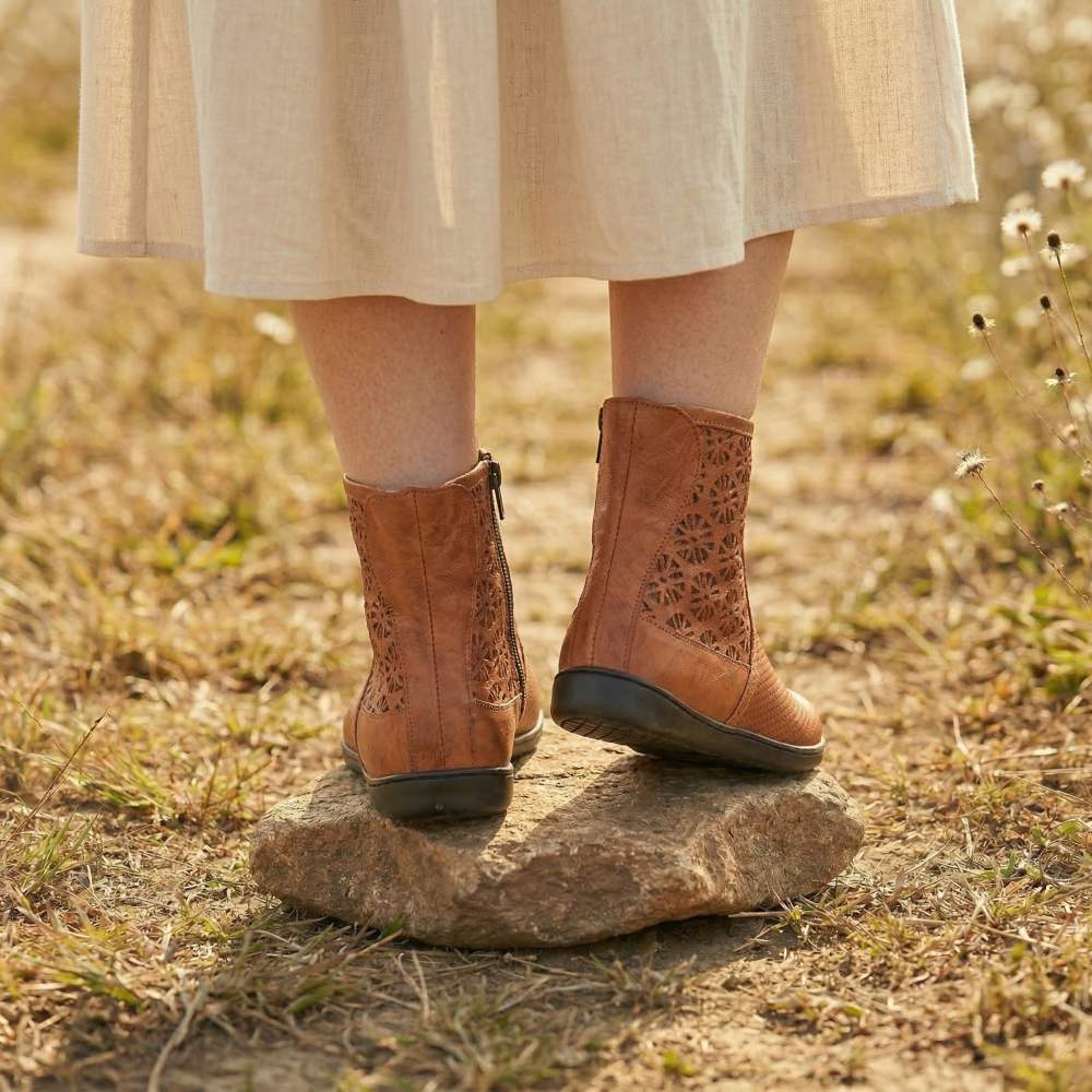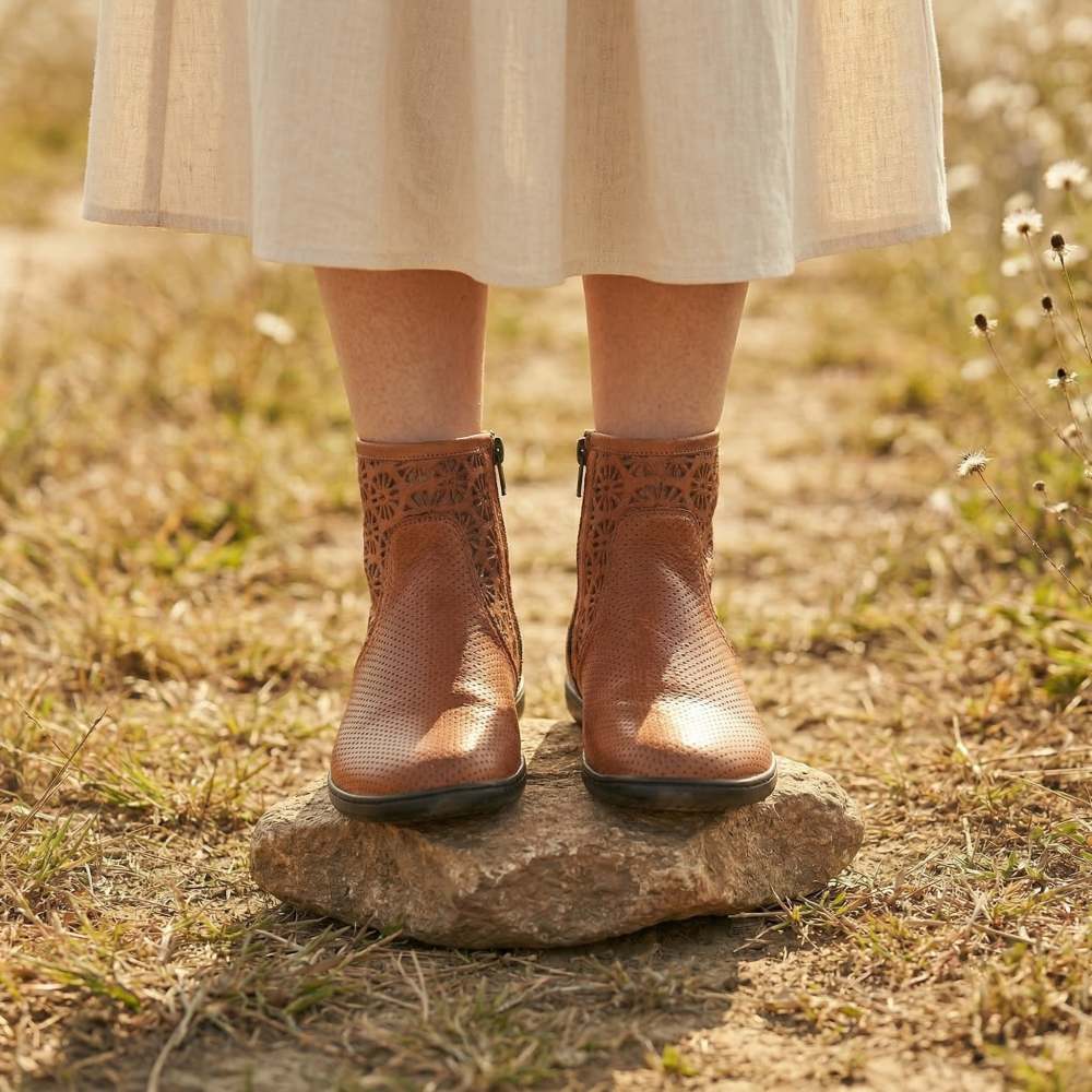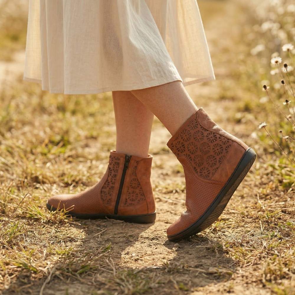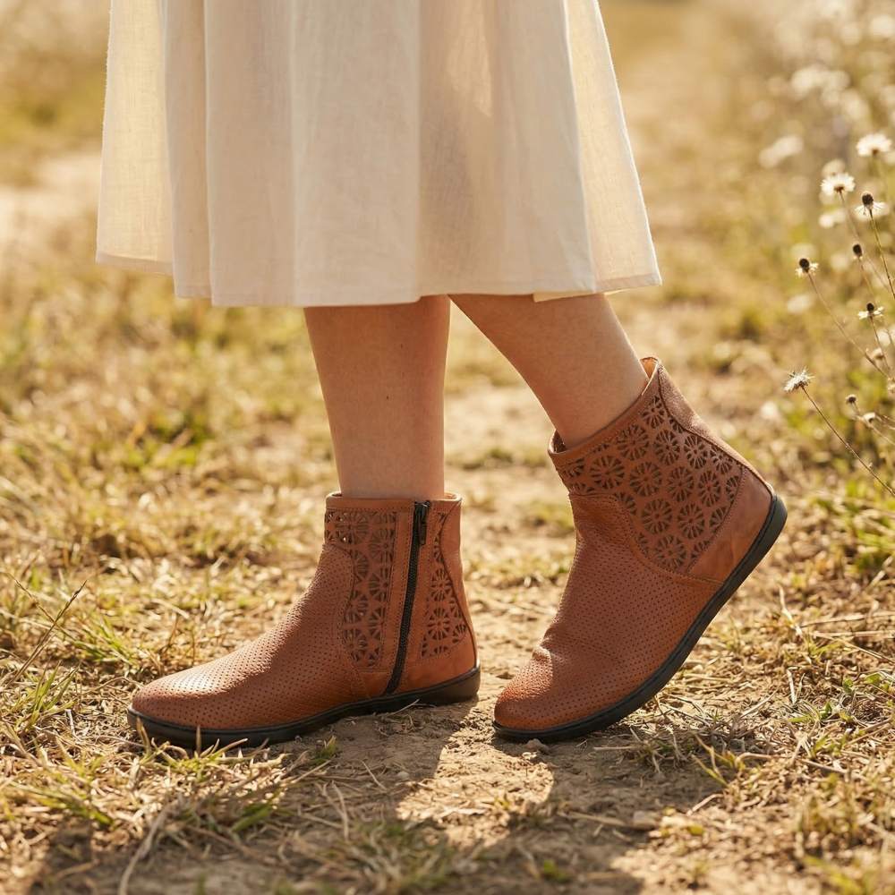 Come materiale superiore, abbiamo cucito una pelle liscia fine, che è perforata dal motivo fiore sull'albero e quindi offre un alto livello di attività respiratoria. All'interno, una cerniera è attaccata, il che rende facile scivolare nella scarpa a piedi nudi.