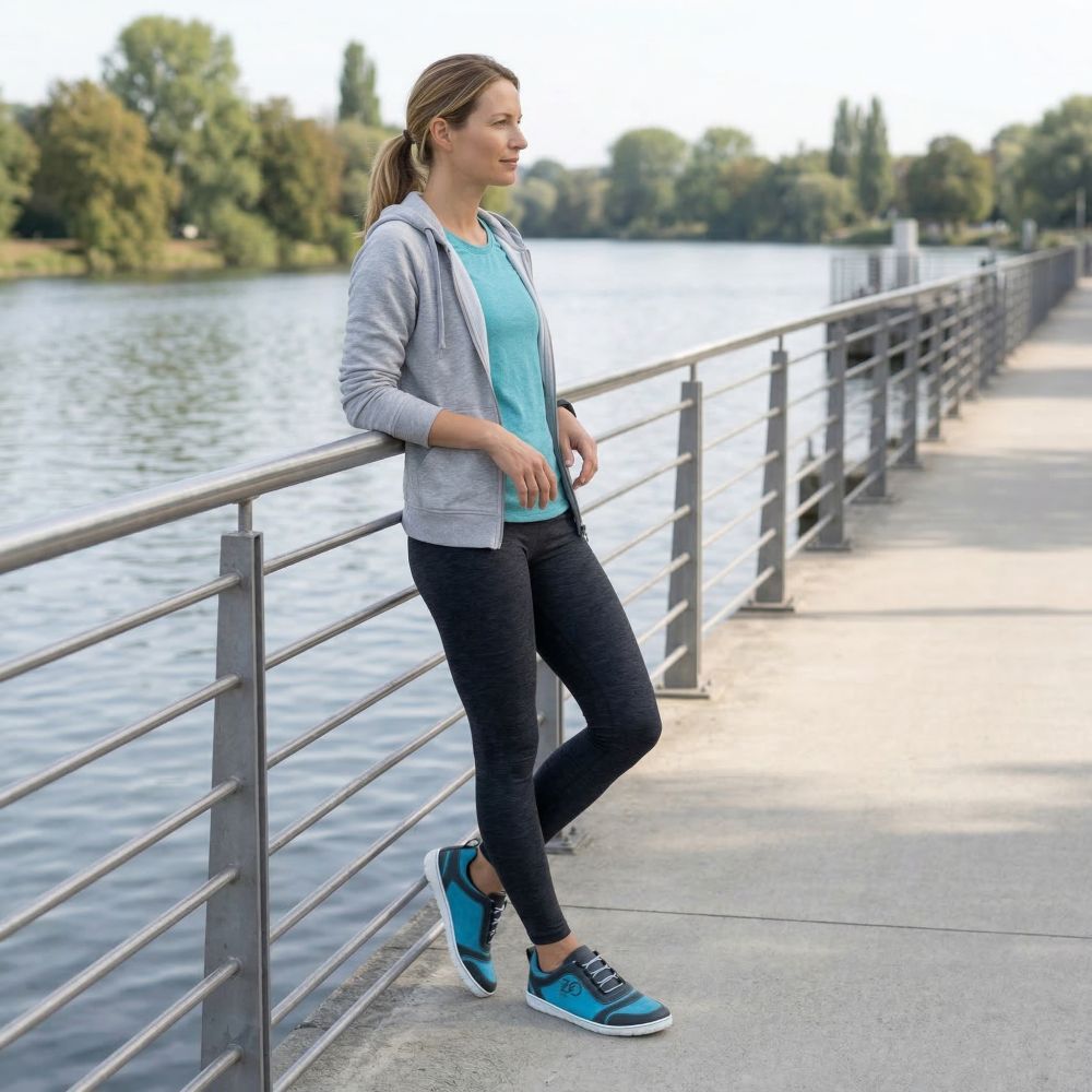 La scarpa a piedi nudi fatta di microfibra vegana si convince con la funzionalità. L'elevata attività di respirazione rende il nostro SQIll la scarpa sportiva perfetta, che può anche essere indossata come sneaker per il tempo libero nella vita di tutti i giorni. Il nostro sqill ottiene il look speciale non solo dal bellissimo turchese, ma anche dai laici asimmetricamente cucite. Questo è davvero unico con questa scarpa a piedi nudi!