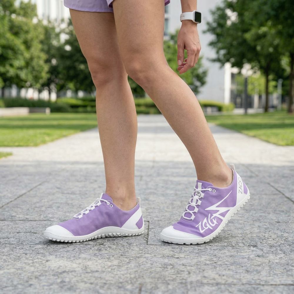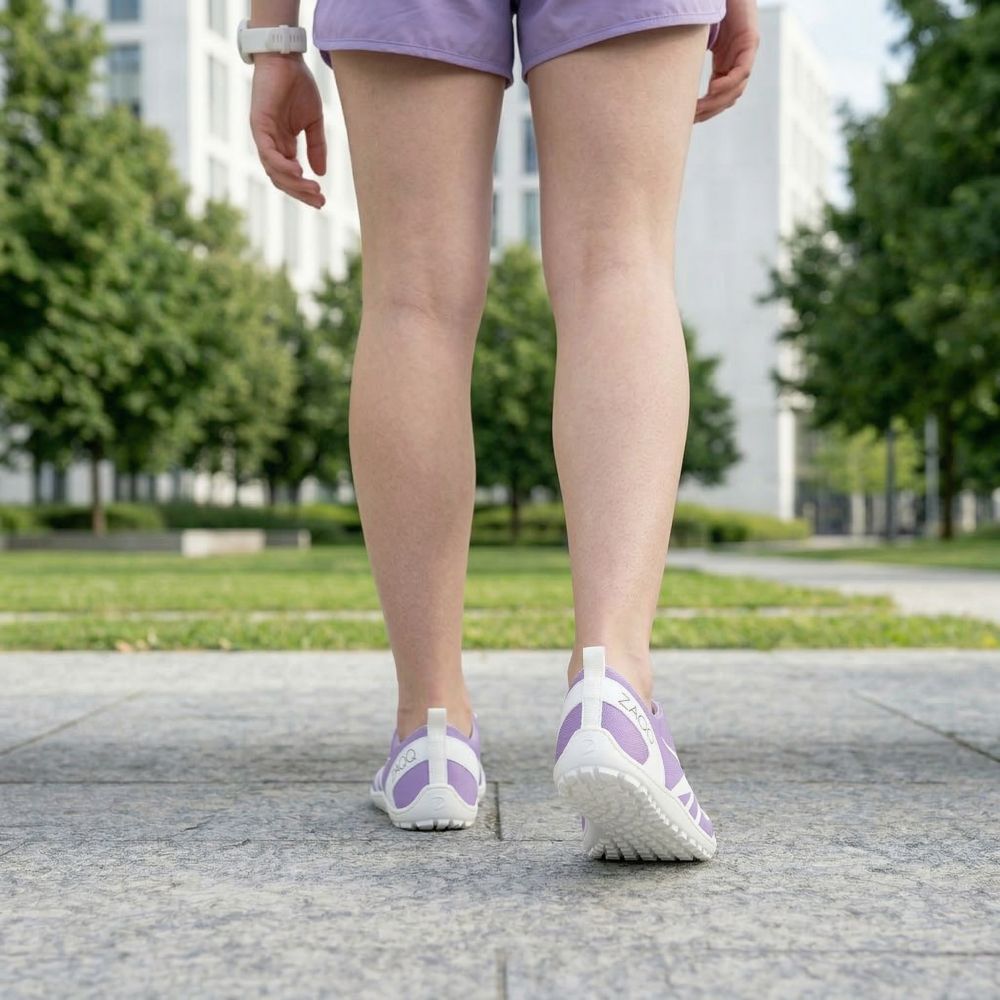 Sole in gomma esterna con tallone zero, alleviando così la colonna vertebrale e proteggendo le articolazioni, supporta la postura naturale