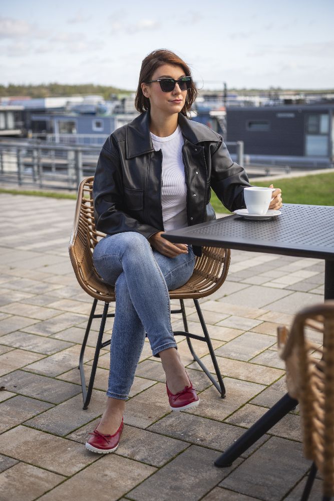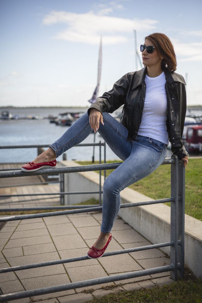 La pelle liscia liscia sottile e scura e il sottile anello danno alla ballerina un aspetto delicato e femminile. Attraverso la sneaker rotta, sembra sportivo, fresco e moderno. La suola a piedi nudi garantisce anche una buona presa e allo stesso tempo è così sottile e flessibile che i tuoi piedi sentono il pavimento ad ogni passo.